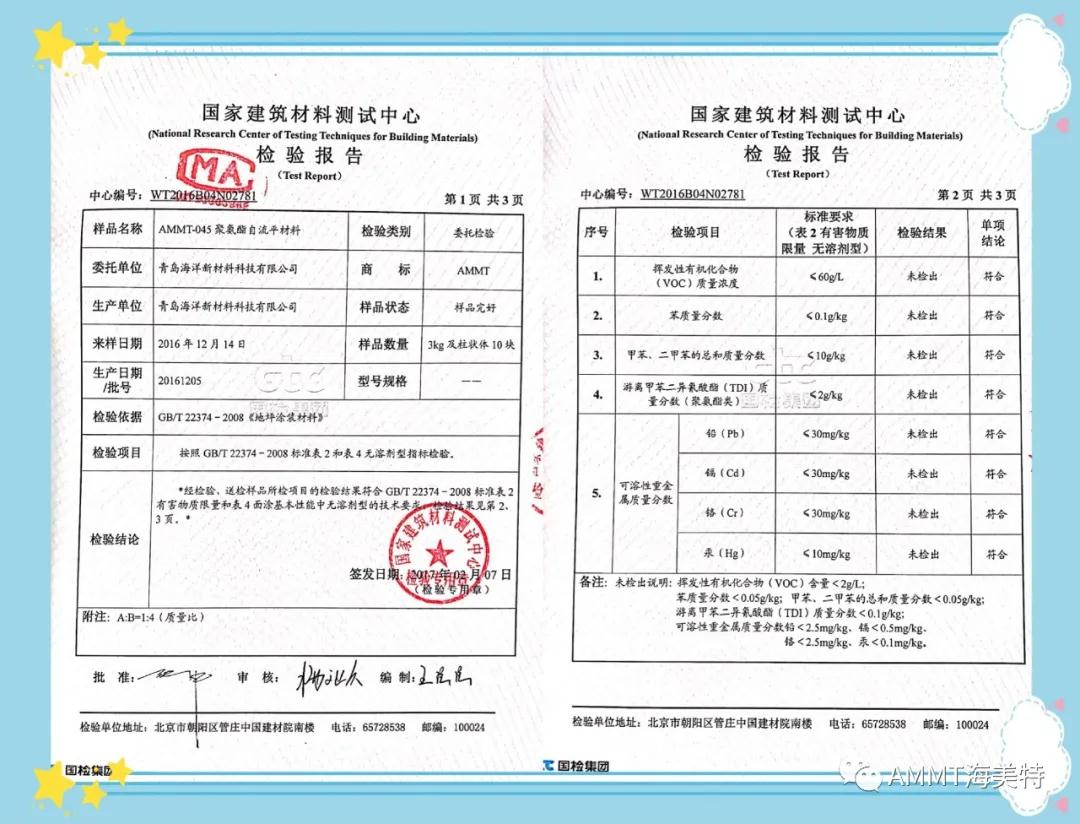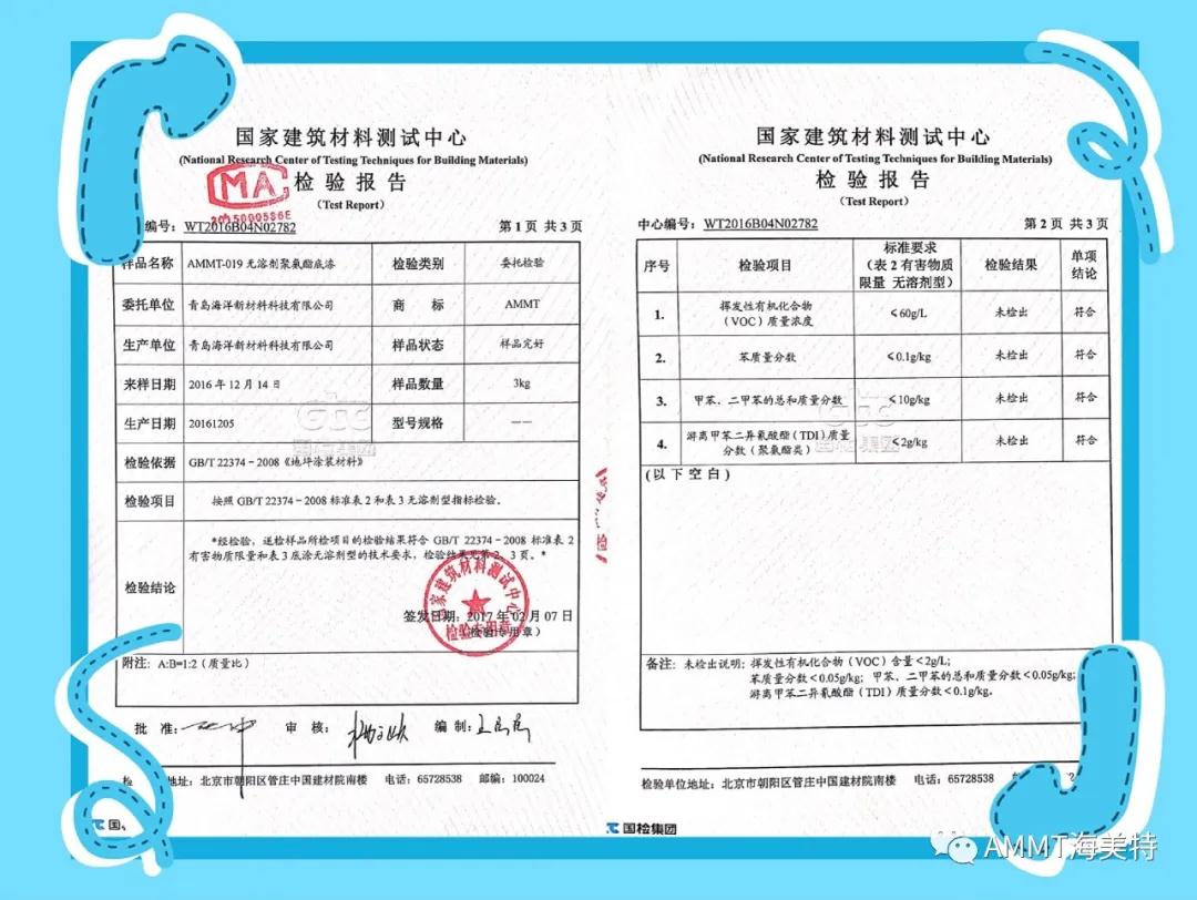 AMMT無(wú)溶劑系列產(chǎn)品由異氰酸酯預(yù)聚物、改性多元醇樹(shù)脂、擴(kuò)鏈劑、填料和助劑組成的雙組份材料,綠色環(huán)保,極低VOC。目前主要產(chǎn)品有:AMMT-045無(wú)溶劑聚氨酯地坪材料(包括自流平、防靜電自流平、砂漿自流平等類(lèi)型地坪材料)、AMMT-046無(wú)溶劑聚脲自流平地坪材料、AMMT-019無(wú)溶劑聚氨酯底漆、AMMT-326無(wú)溶劑環(huán)氧底漆等。AMMT無(wú)溶劑系列產(chǎn)品經(jīng)過(guò)權(quán)威機(jī)構(gòu)檢測(cè)均達(dá)到新標(biāo)準(zhǔn)環(huán)保要求。