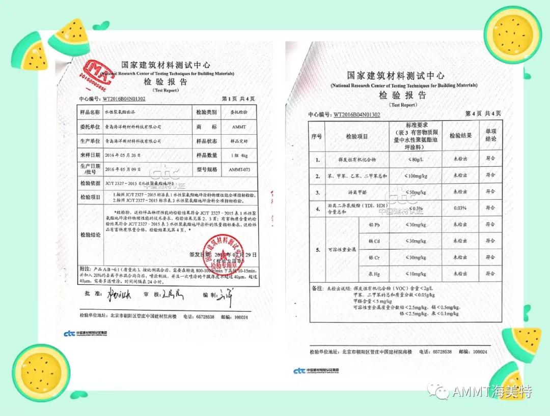 AMMT無(wú)溶劑系列產(chǎn)品由異氰酸酯預(yù)聚物、改性多元醇樹(shù)脂、擴(kuò)鏈劑、填料和助劑組成的雙組份材料,綠色環(huán)保,極低VOC。目前主要產(chǎn)品有:AMMT-045無(wú)溶劑聚氨酯地坪材料(包括自流平、防靜電自流平、砂漿自流平等類(lèi)型地坪材料)、AMMT-046無(wú)溶劑聚脲自流平地坪材料、AMMT-019無(wú)溶劑聚氨酯底漆、AMMT-326無(wú)溶劑環(huán)氧底漆等。AMMT無(wú)溶劑系列產(chǎn)品經(jīng)過(guò)權(quán)威機(jī)構(gòu)檢測(cè)均達(dá)到新標(biāo)準(zhǔn)環(huán)保要求。